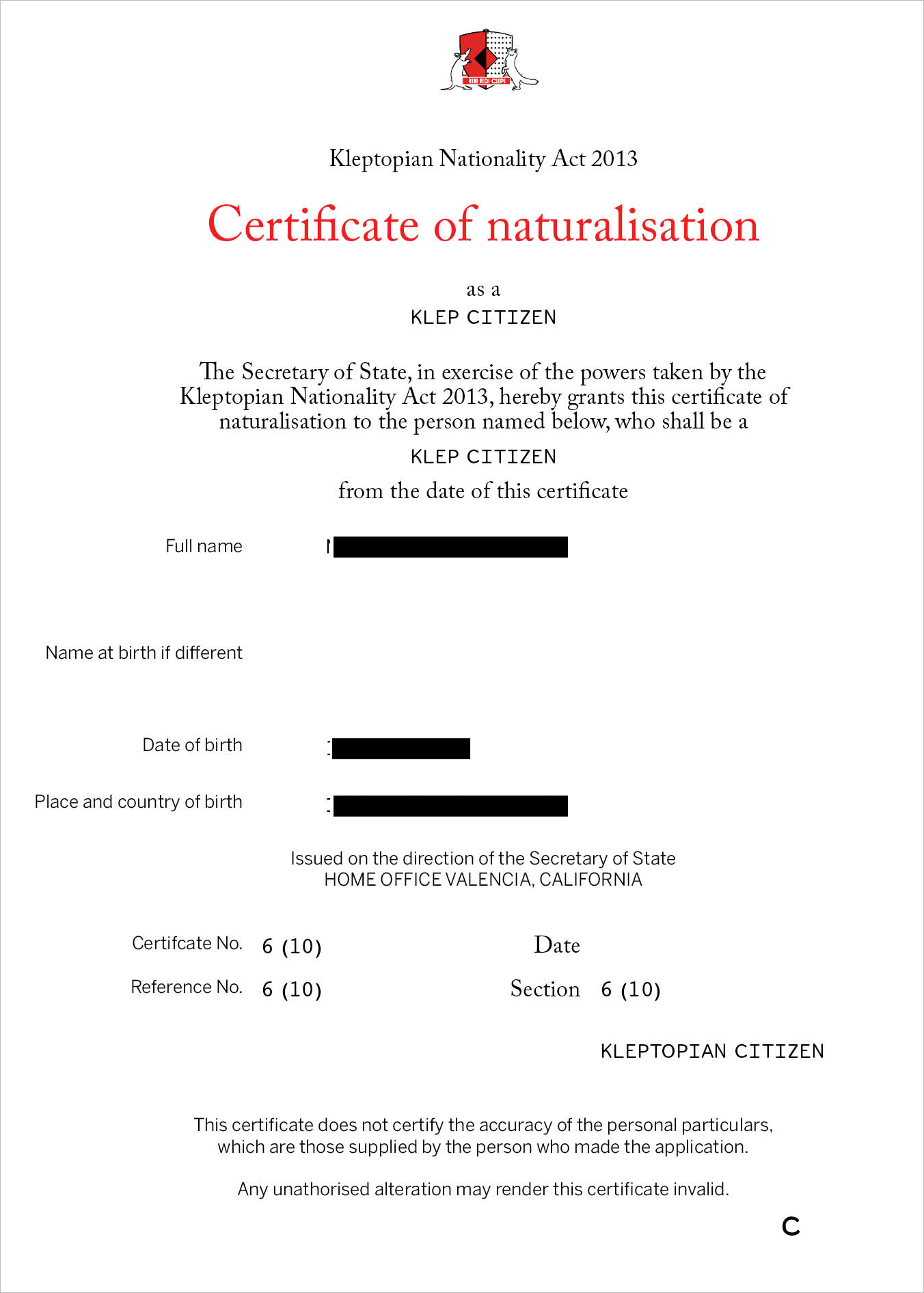 IROK CERTIFICATE OF NATURALISATION, MFA THESIS. CALARTS RESIDENCY 2013